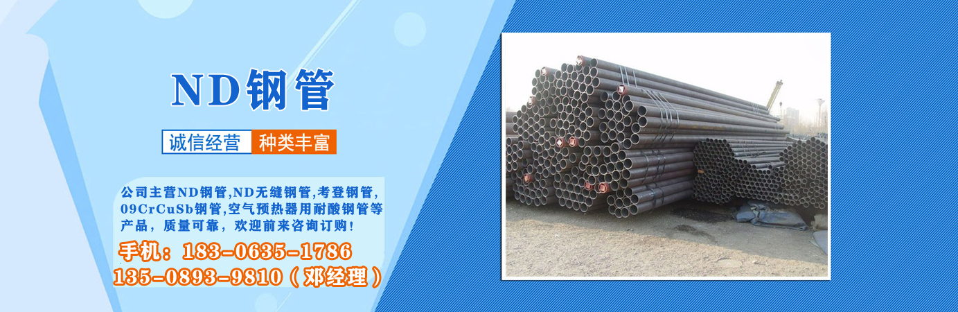 山東昊月金屬制品有限公司是一家鋼材企業。經營ND鋼管,ND無縫鋼管,考登鋼管,09CrCuSb鋼管,空氣預熱器用耐酸鋼管等。 服務宗旨:來到無貨包損失、貨不滿意不裝車、辦完手續再付款 本公司全體員工向關心和支持我們的各級領導和各界朋友表示誠摯的謝意! 始終堅持以市場為導向,不斷壯大企業規模,提升企業核心競爭能力,力圖在短時間內,創造注漿管品牌,提供滿意的服務?! 」窘浝頂y全體員工恭候各地新老賓客光臨本鋼管供應公司,實地考察、指導工作、增進了解! 歡迎前來咨詢合作!...